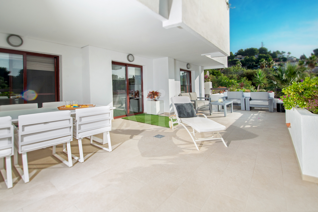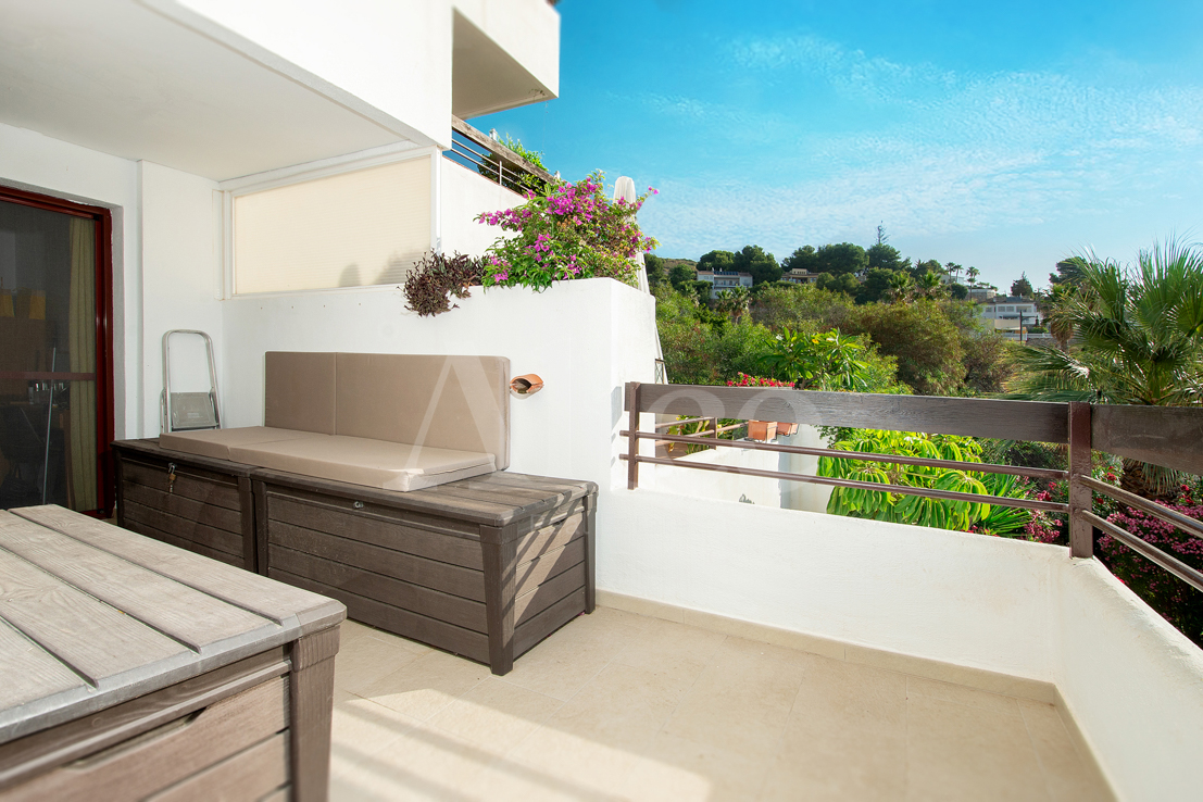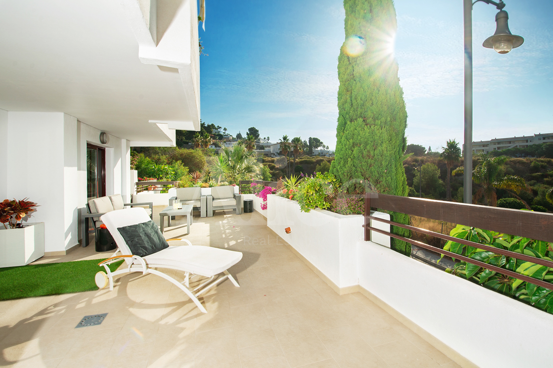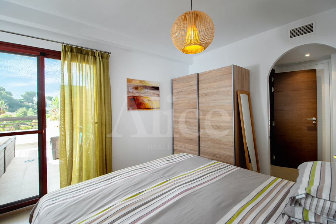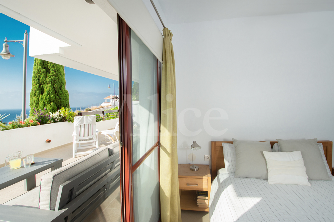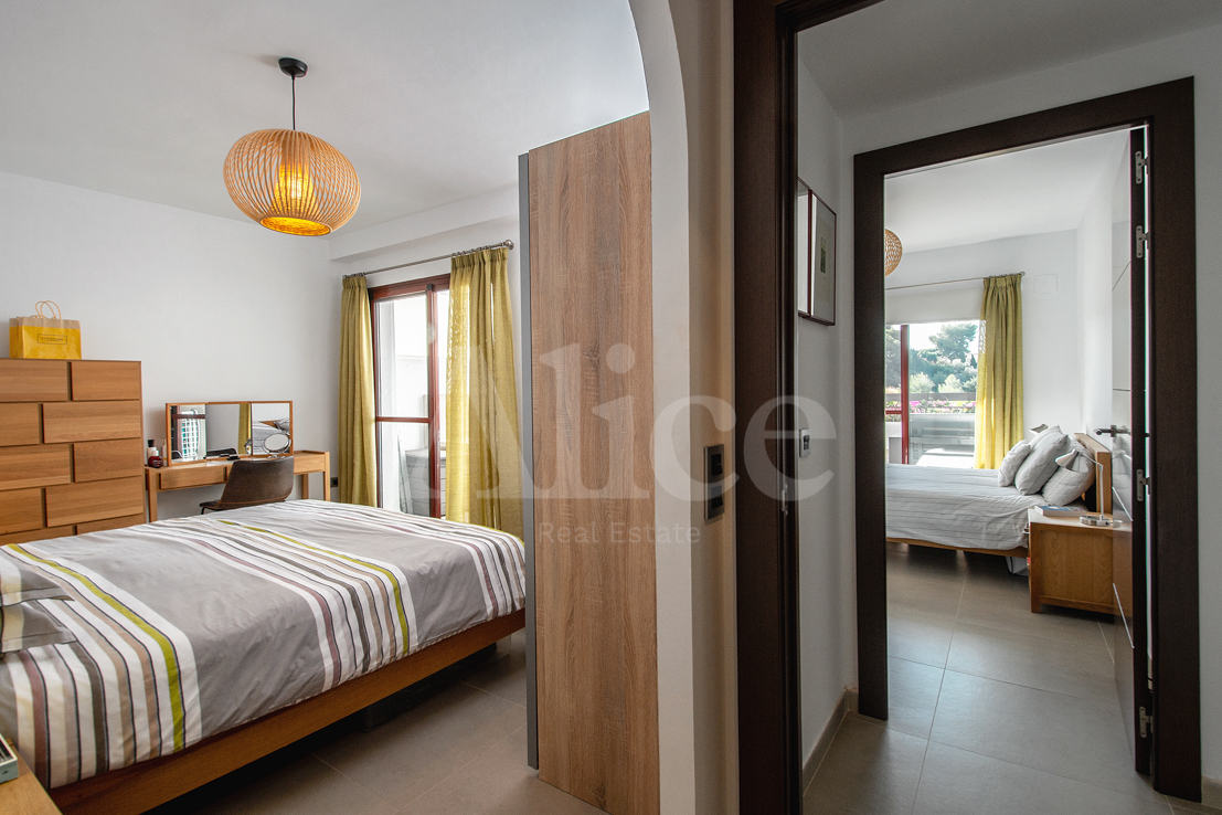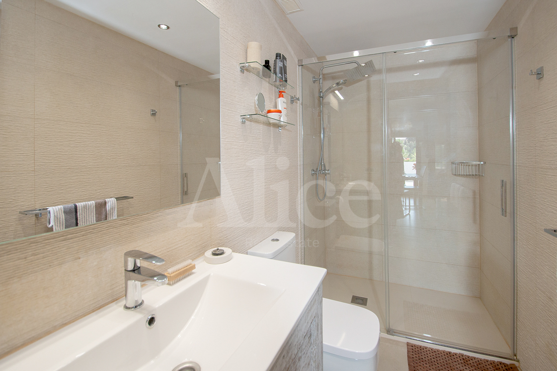 La terraza no tiene menos de 63 m2, con vistas al mar y a las montañas. Tiene varias puertas correderas para conectar la sala de estar y la terraza de una manera casi perfecta. Hay dos dormitorios y desde ambos tiene su propio acceso a la terraza. Una de las habitaciones tiene un baño privado. Hay un segundo baño fuera del otro dormitorio conectado a la sala de estar.