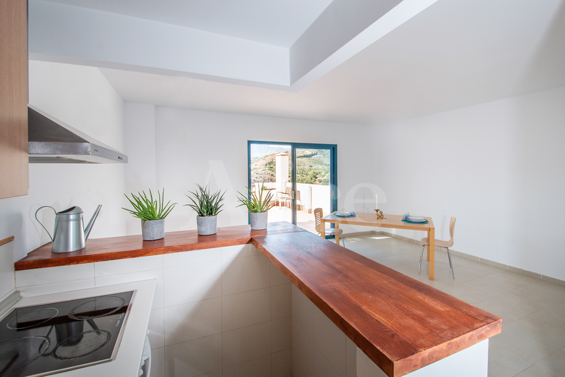 There is also a bathroom with bath and toilet. The kitchen has an open plan living / dining room and exit to the large terrace of 35 m2! Here you enjoy the sun until it goes down in the horizon and there is space for most things, barbecue, dining area and lounge or why not a jacuzzi! Both sea and mountain views from this wonderful terrace.