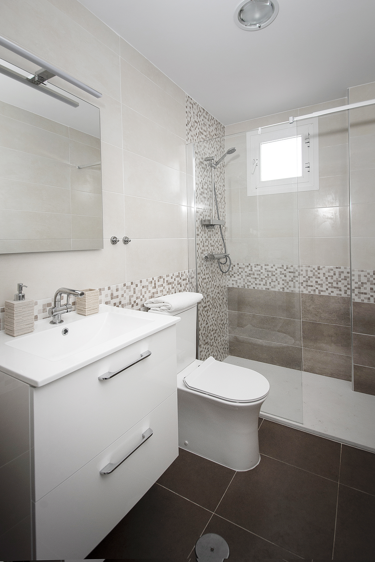 2d floor, 42 m2: 2 bedrooms, one with an attached terrace, air conditioning and fitted wardrobes, bathroom. A terrace on the other side of the floor with an evening sun measuring 28 m2.
